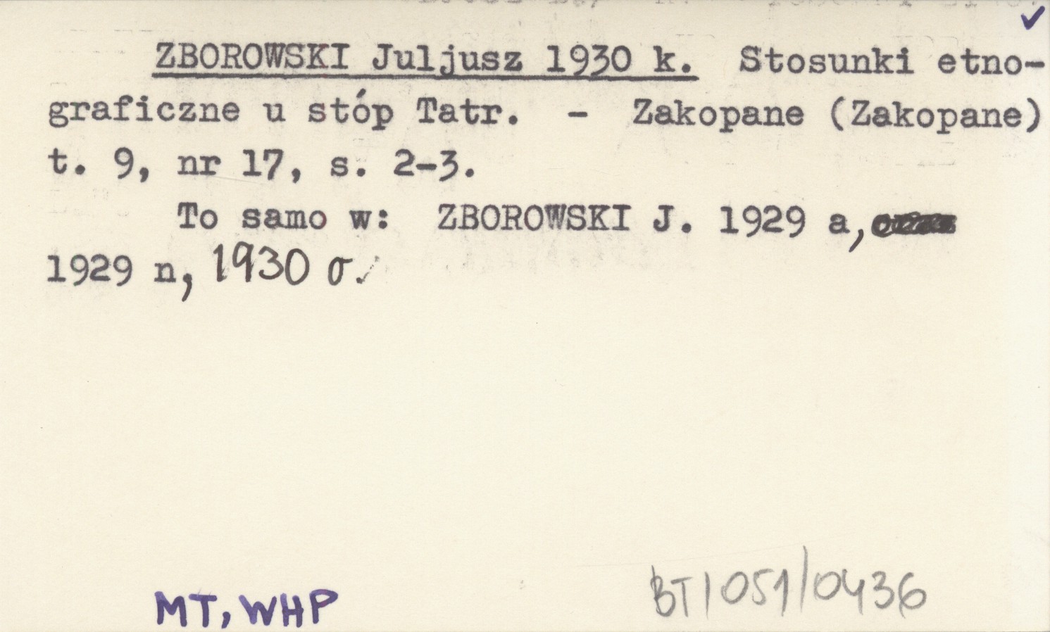 Zakopane (Zakopane) , T. 9, nr 17: 2-3. To samo w: ZBOROWSKI J. 1929 a, 1929 n, 1930 o.