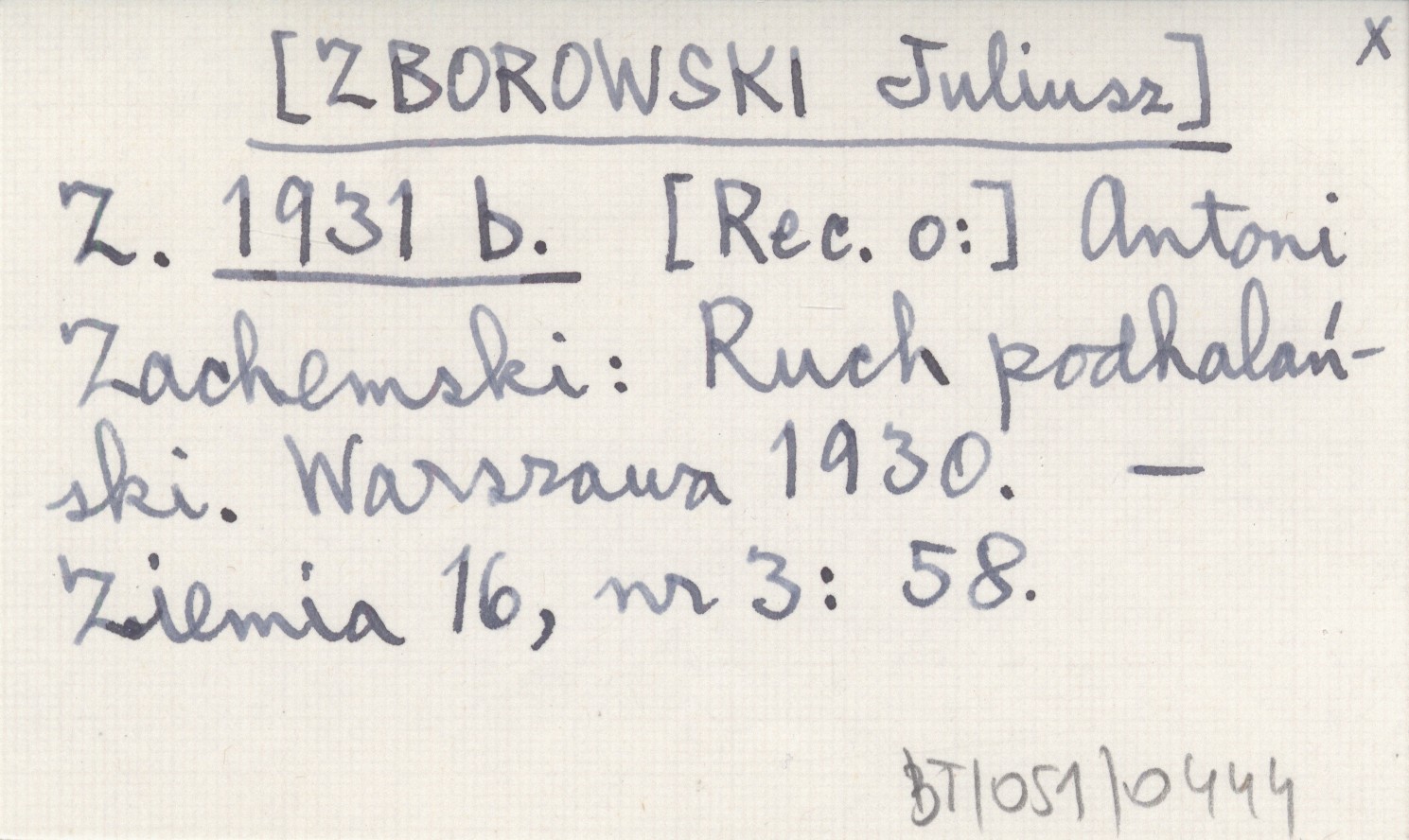 Z. [ZBOROWSKI Juliusz] 1931 b [Rec. o:] Antoni Zachemski: Ruch podhalański. Warszawa 1930.