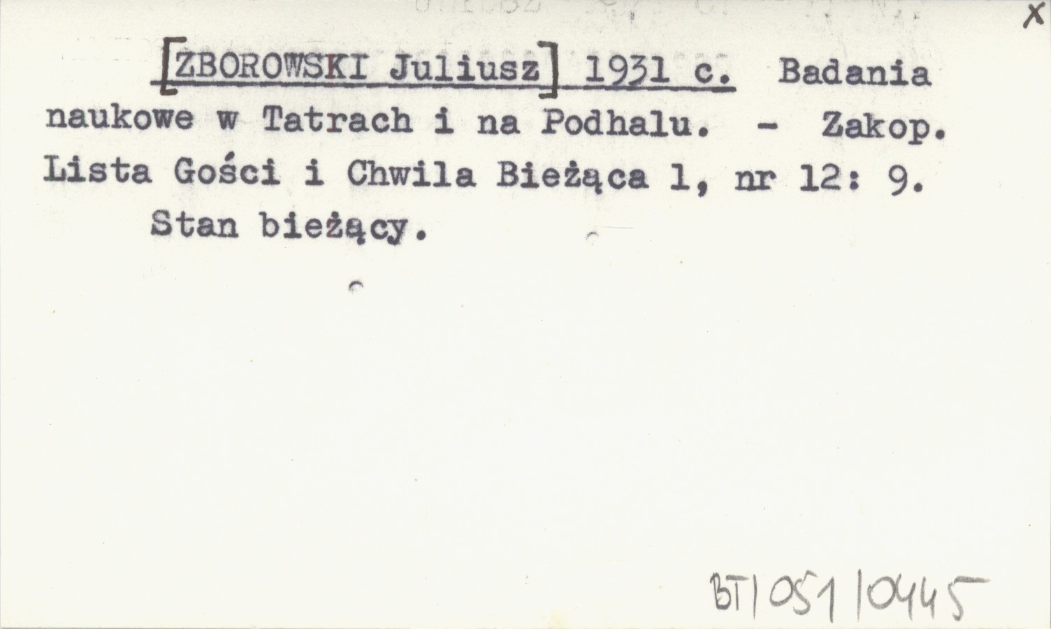 [ZBOROWSKI Juliusz] 1931 c Badania naukowe w Tatrach i na Podhalu.