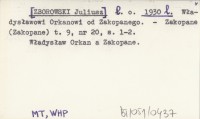 l.o. [ZBOROWSKI Juliusz] 1930 l Władysławowi Orkanowi od Zakopanego.
