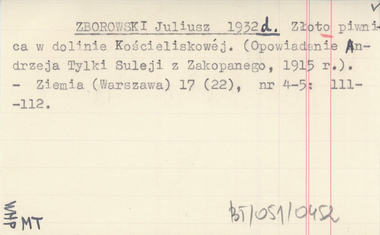 ZBOROWSKI Juliusz 1932 d Złoto piwnica w dolinie Kościeliskowej. (Opowiadanie Andrzeja Tylko Suleji z Zakopanego, 1915 r.).