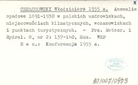 CHE£CHOWSKI W³odzimierz 1955 a Anomalie opadowe 1891-1930 w polskich uzdrowiskach, miejscowo¶ciach klimatycznych, wczasowiskach i punktach turystycznych.