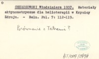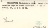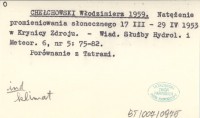 CHE£CHOWSKI W³odzimierz 1955 Natê¿enie promieniowania s³onecznego 6-26 XII 1952 w 3 punktach rejonu Zakopanego.