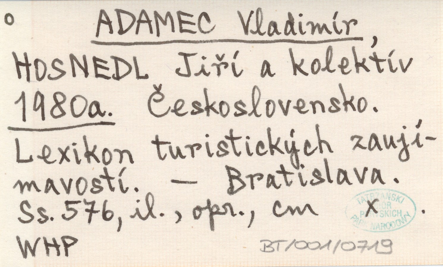 ADAMEC Vladimír HOSNEDL, Jiří. ; 1980 a Československo. Lexikon turistických zaujímavostí.