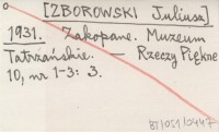 [ZBOROWSKI Juliusz] 1931 Zakopane. Muzeum Tatrzańskie.