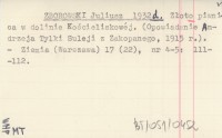 ZBOROWSKI Juliusz 1932 c Jak Poniezus ukoroł bogocke. (Opowiadanie w gwarze góralskiej, zapisane od Józefa Bednarczyka z Cichego w 1919 r.).