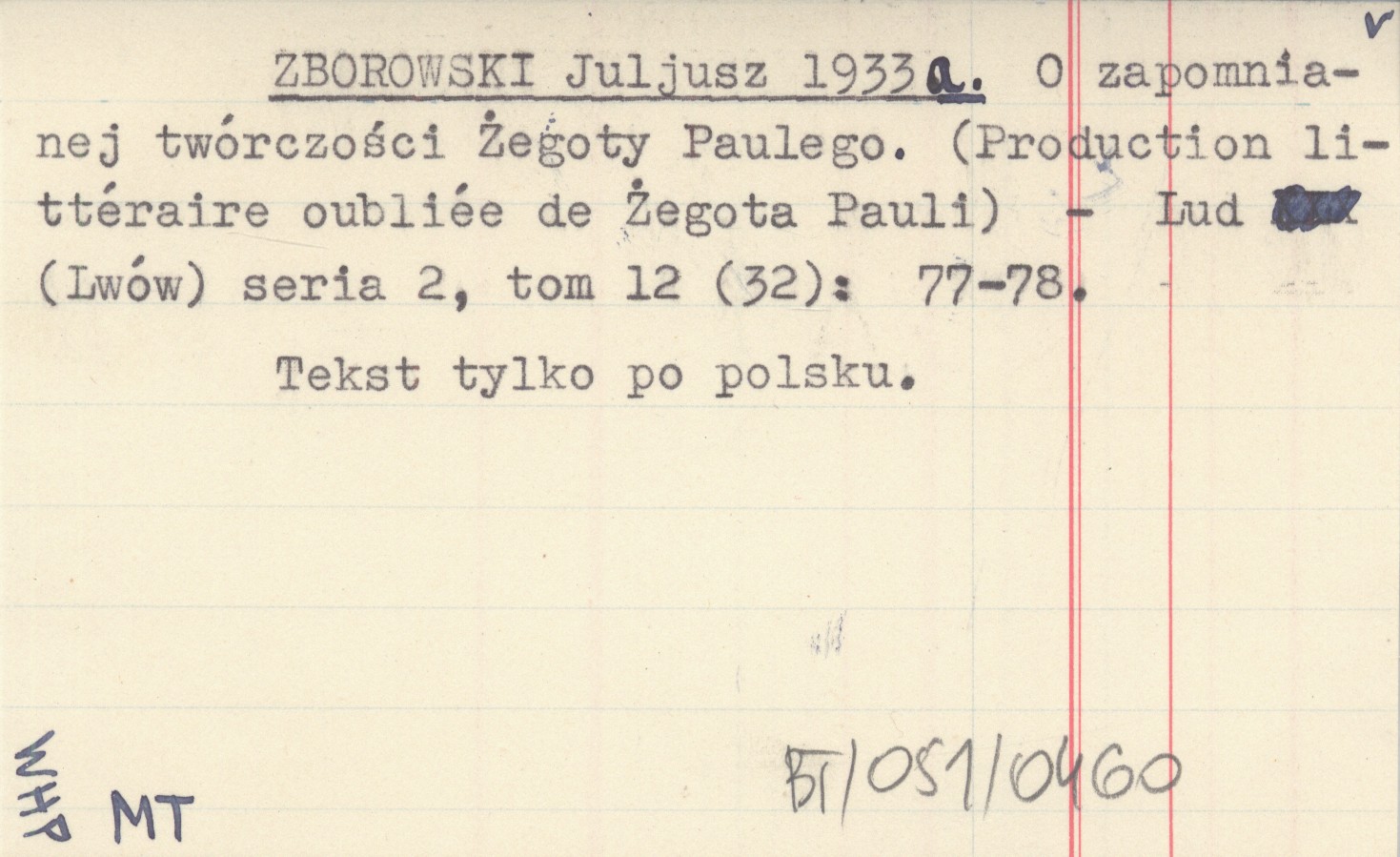 ZBOROWSKI Juljusz 1933 a O zapomnianej twórczości Żegoty Paulego. (Production littéraire oubliée de Żegota Pauli).