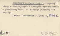 ZBOROWSKI Juljusz 1933 f Legendy i błędy w dawniejszych i nowszych wydawnictwach o góralszczyźnie.