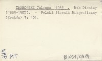 ZBOROWSKI Juljusz 1935 Bek Dionizy (1865-1907).