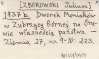 [ZBOROWSKI Juliusz] 1937 b Dworek Moniaków w Zubrzycy Górnej na Orawie własnością państwa.