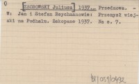 [ZBOROWSKI Juliusz] 1937... Przedmowa.