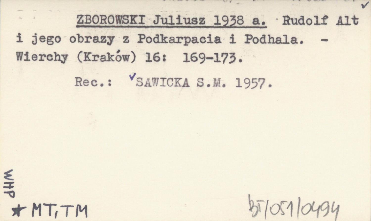 ZBOROWSKI Juliusz 1938 a Rudolf Alt i jego obrazy z Podkarpacia i Podhala.
