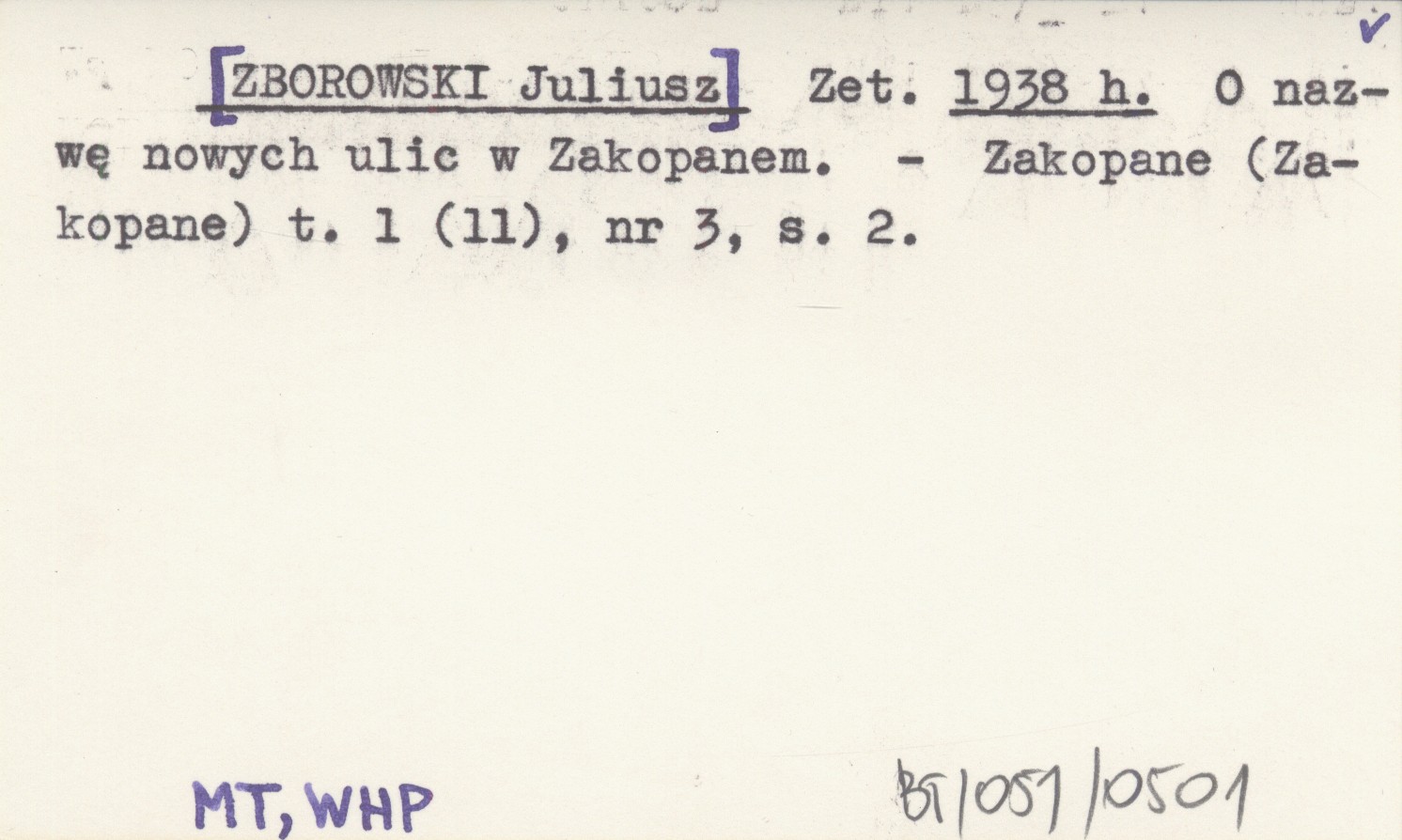 Zet. [ZBOROWSKI Juliusz] 1938 h O nazwę nowych ulic w Zakopanem.