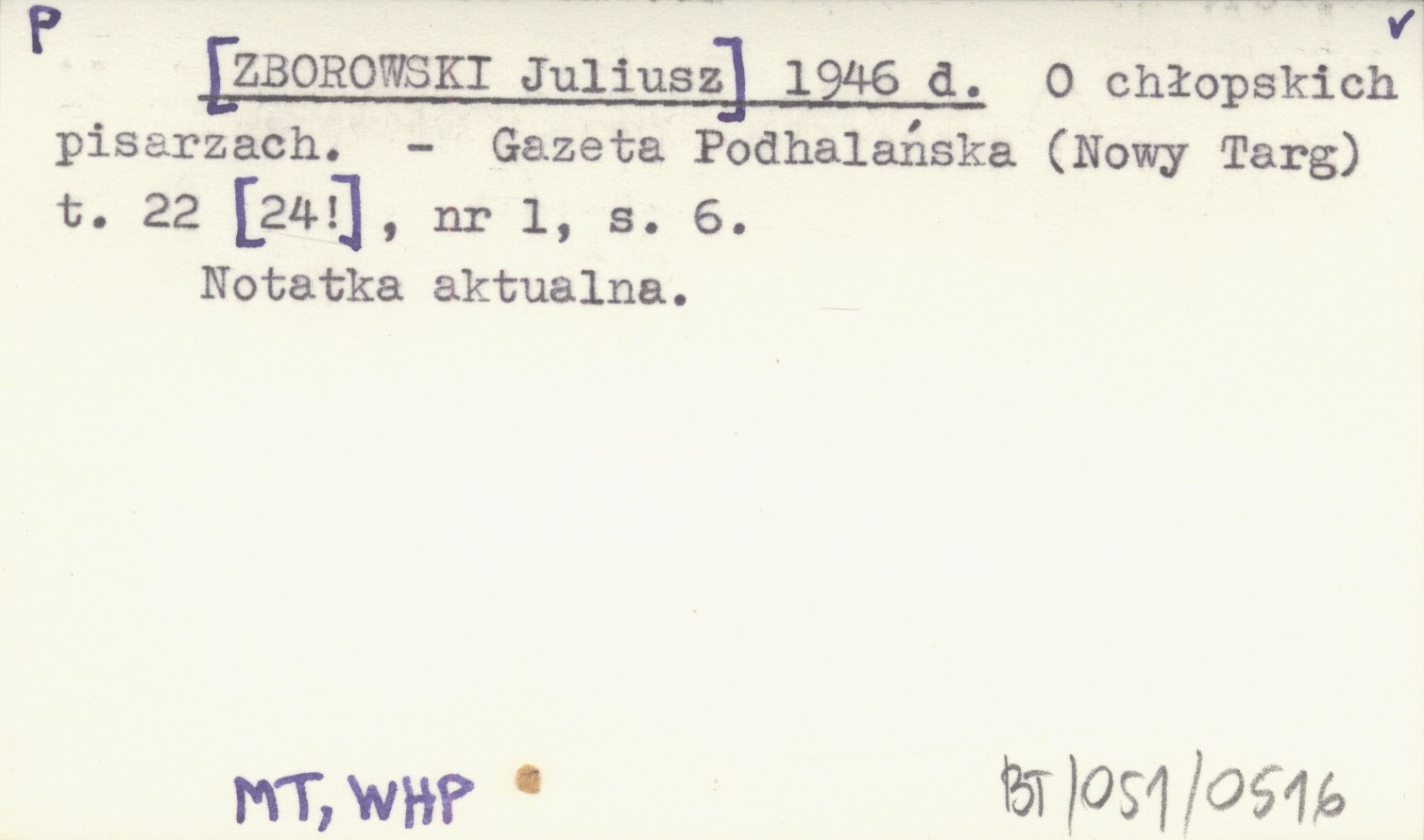 [ZBOROWSKI Juliusz] 1946 d O chłopskich pisarzach.
