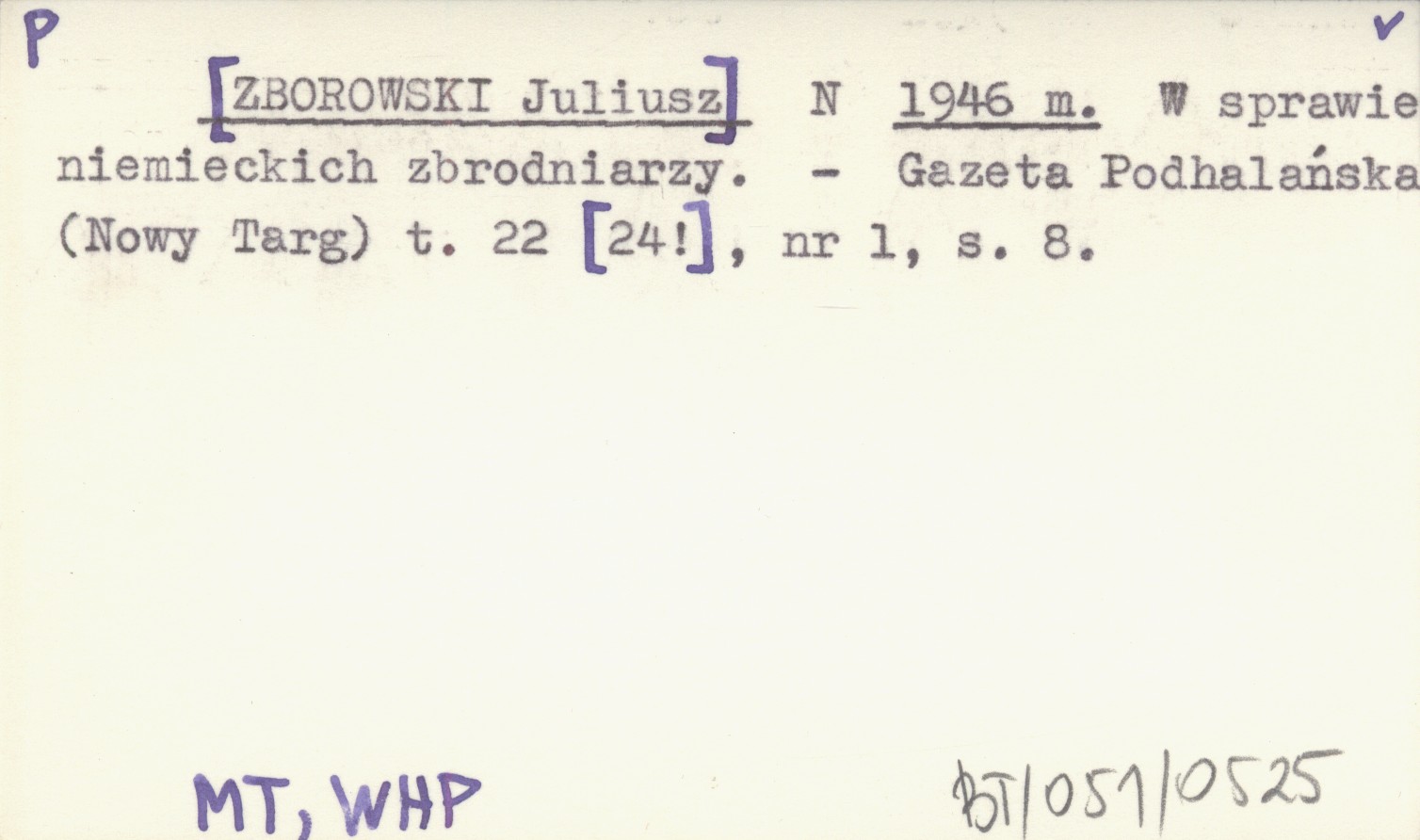 N [ZBOROWSKI Juliusz] 1946 m W sprawie niemieckich zbrodniarzy.