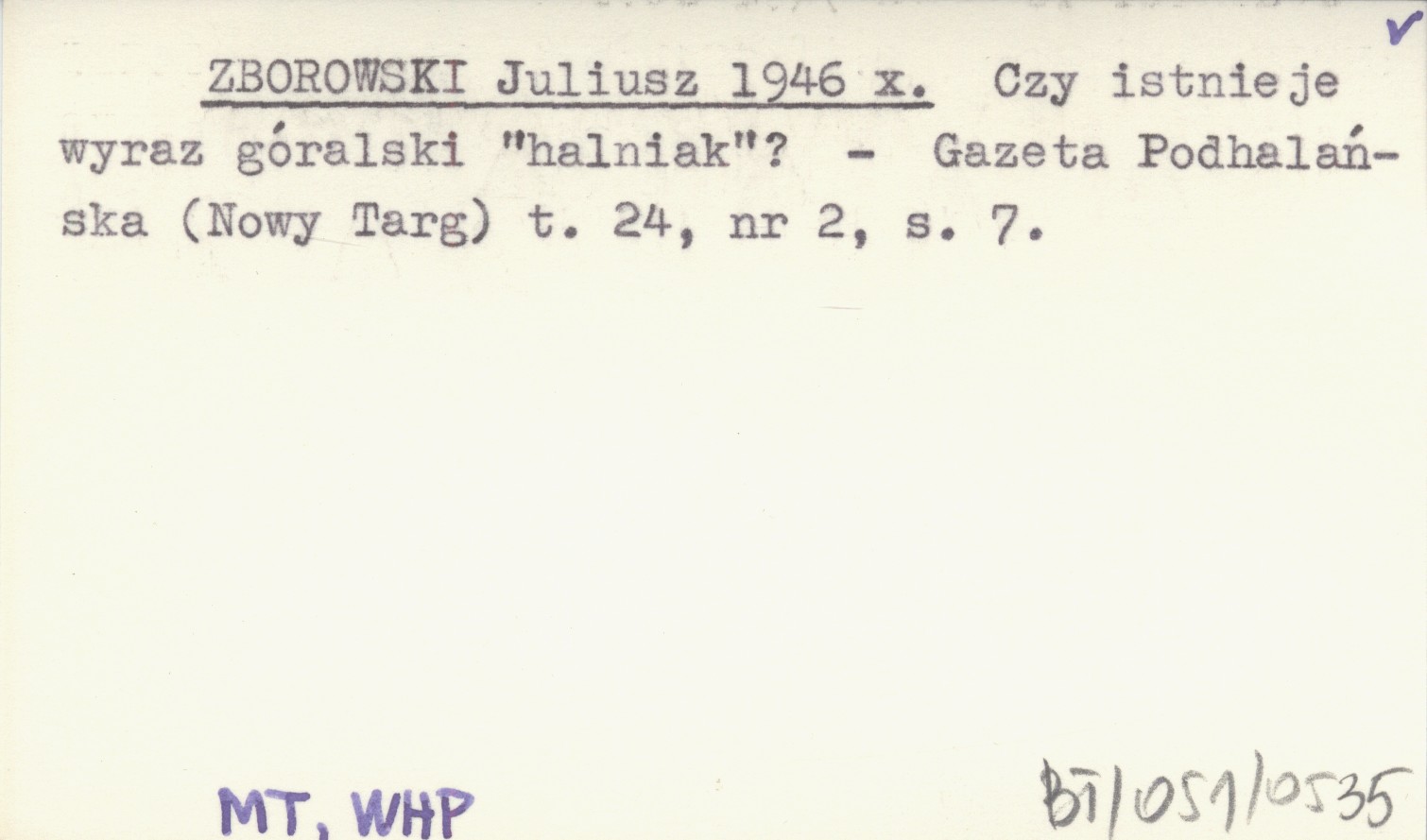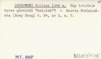 ZBOROWSKI Juliusz 1946 x Czy istnieje wyraz góralski "halniak"?