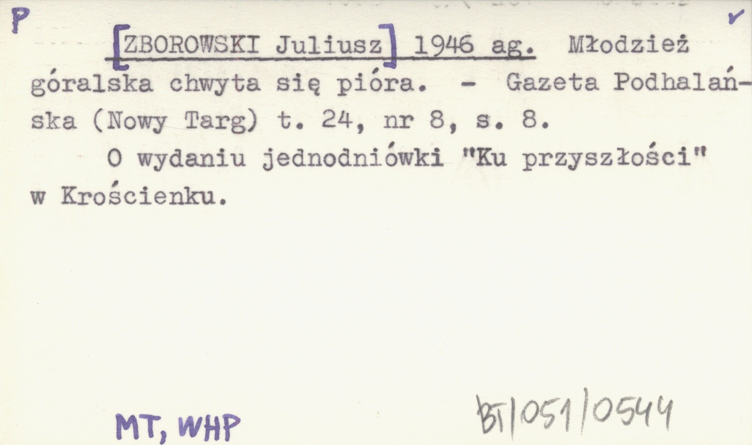 [ZBOROWSKI Juliusz] 1946 ag Młodzież góralska chwyta za pióra.