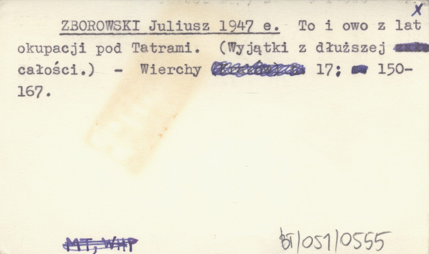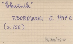 ZBOROWSKI Juliusz 1947 e To i owo z lat okupacji pod Tatrami. (Wyjątki z dłuższej całości).