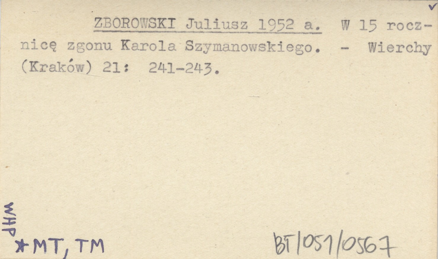 ZBOROWSKI Juliusz 1952 a W 15 rocznicę zgonu Karola Szymanowskiego.