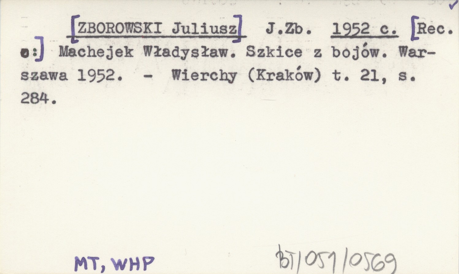 J. Zb. [ZBOROWSKI Juliusz] 1952 c [Rec. o:] Machejek Władysław. Szkice z bojów. Warszawa 1952.