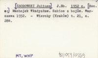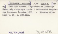 J. Zb. [ZBOROWSKI Juliusz] 1952 f [Rec. o:] Vetulani Armand i Ryszkiewicz Andrzej: Materiały dotyczące życia i twórczości Wojciecha Gersona. Wrocław 1951.