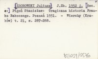J. Zb. [ZBOROWSKI Juliusz] 1952 j [Rec. o:] Pigoń Stanisław: Tragiczna historia Franka Rakoczego. Poznań 1951.