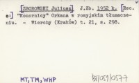 J. Zb. [ZBOROWSKI Juliusz] 1952 k [Rec. o:] "Komornicy" Orkana w rosyjskim tłumaczeniu.
