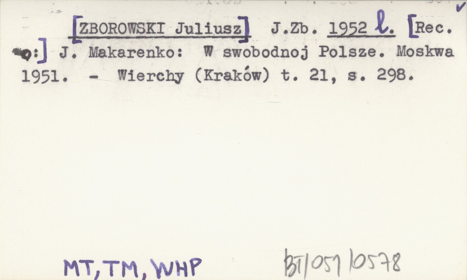 J. Zb. [ZBOROWSKI Juliusz] 1952 l [Rec. o:] J. Makarenko: W swobodnoj Polsze. Moskwa 1951.
