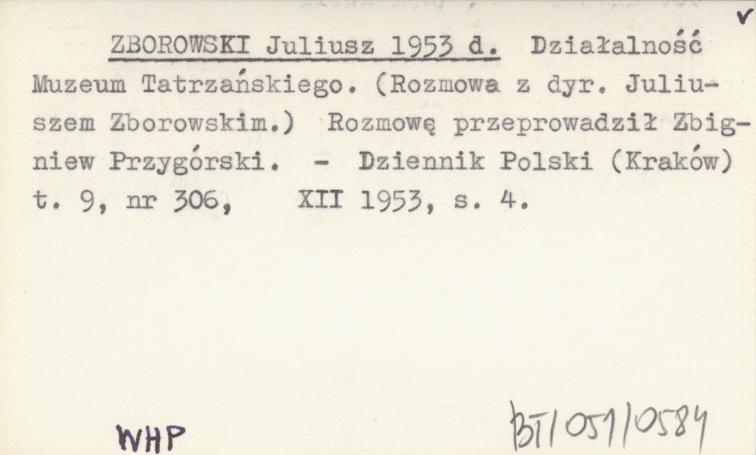 ZBOROWSKI Juliusz 1953 d Działalność Muzeum Tatrzańskiego. (Rozmowa z dyr. Juliuszem Zborowskim). Rozmowę przeprowadził Zbigniew Przygórski.
