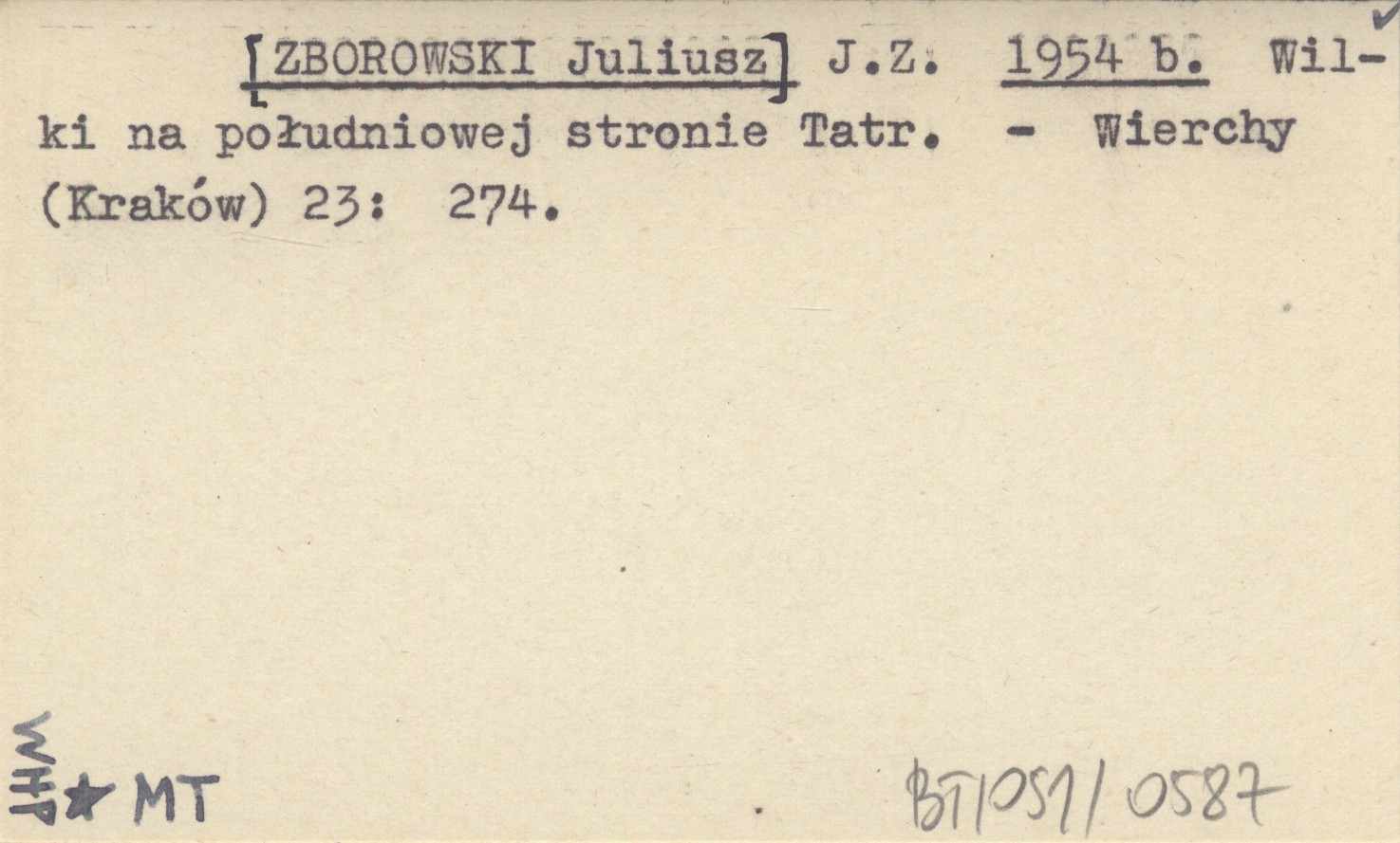 J. Z. [ZBOROWSKI Juliusz] 1954 b Wilki na południowej stronie Tatr.