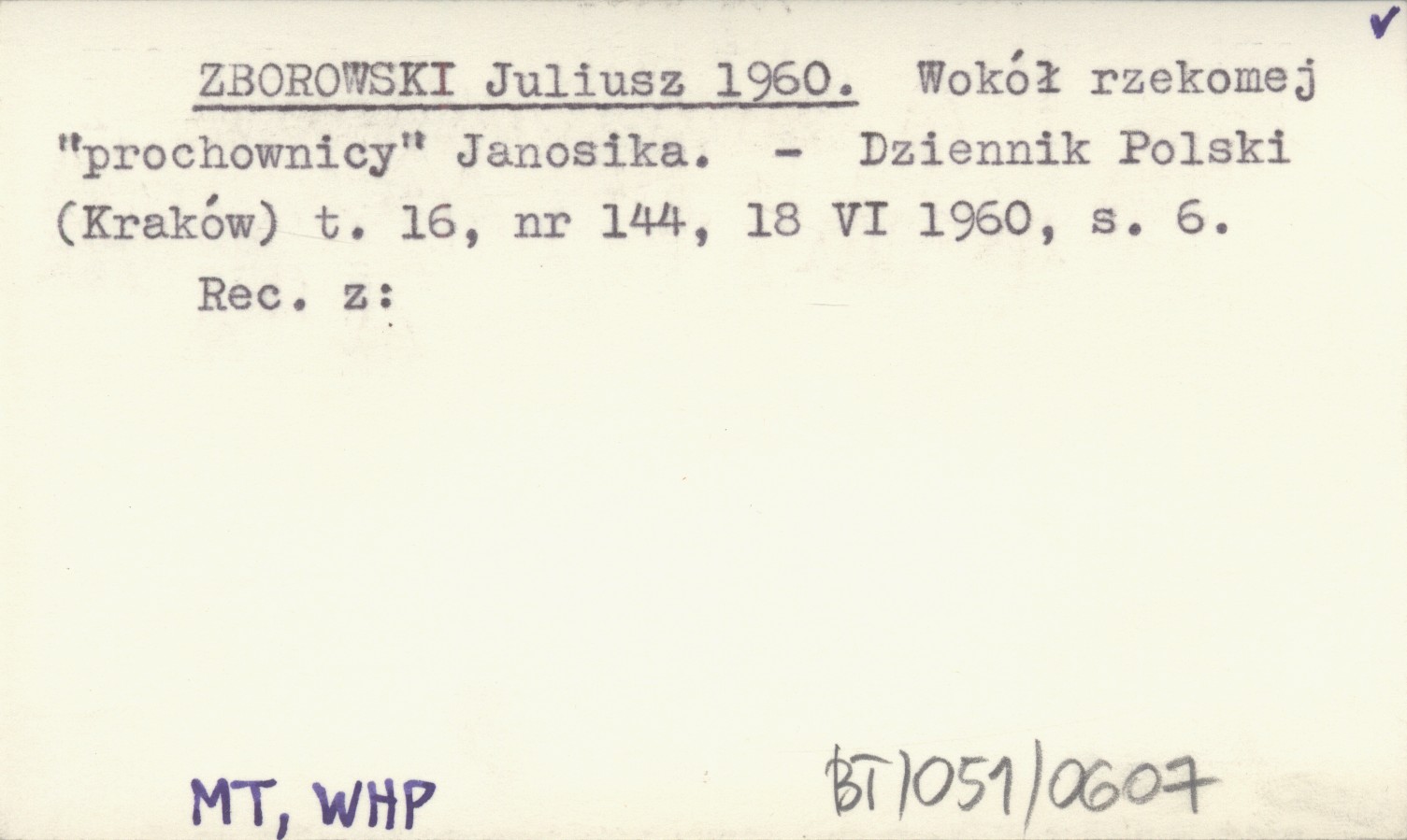 ZBOROWSKI Juliusz 1960 Wokół rzekomej "prochownicy" Janosika.
