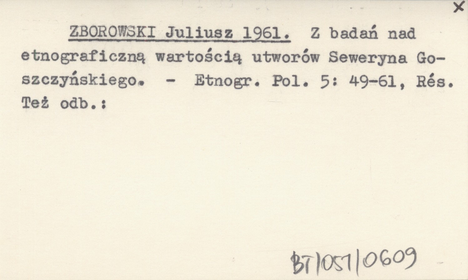ZBOROWSKI Juliusz 1961 Z badań nad etnograficzną wartością utworów Seweryna Goszczyńskiego.
