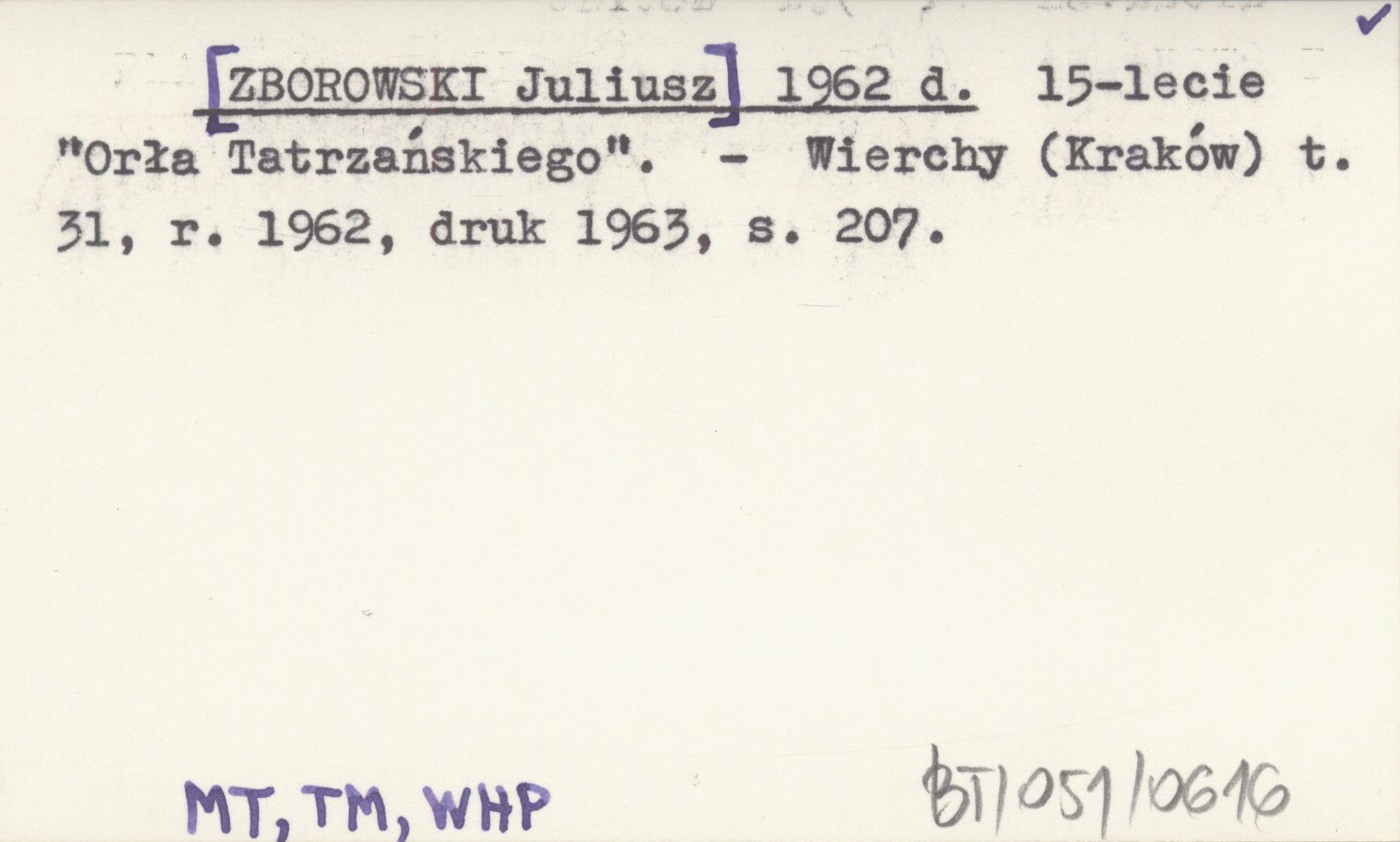 [ZBOROWSKI Juliusz] 1962 d 15-lecie "Orła Tatrzańskiego".