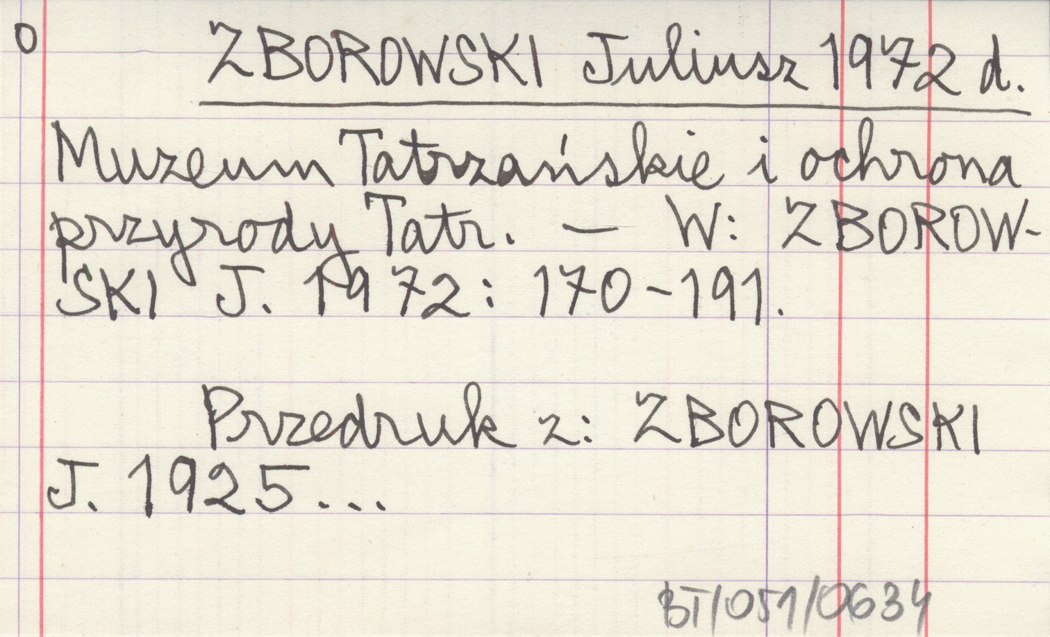 ZBOROWSKI Juliusz 1972 d Muzeum Tatrzańskie i ochrona przyrody Tatr.