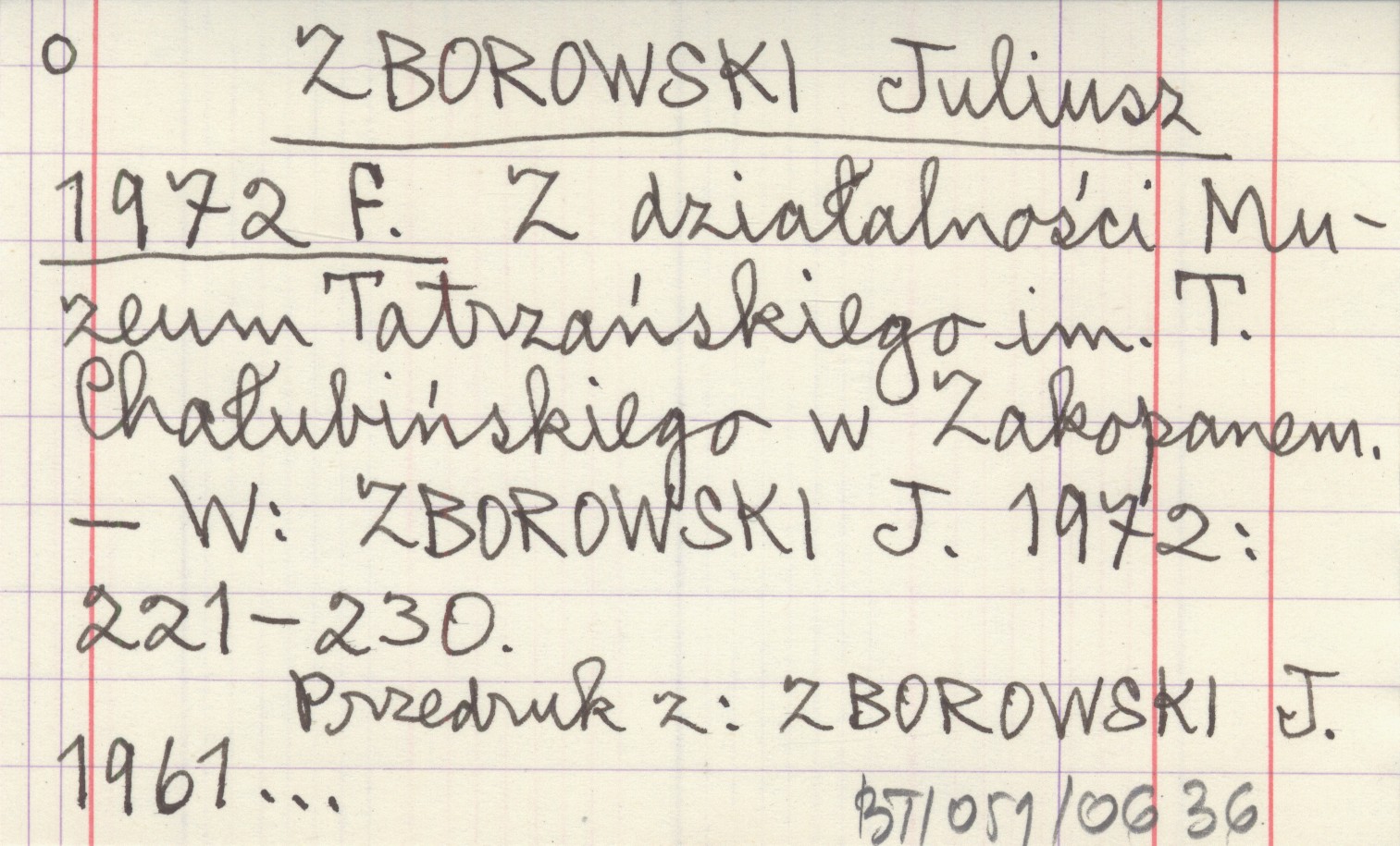 ZBOROWSKI J. 1972 , S. 221-230. Przedruk z: ZBOROWSKI J. 1961...