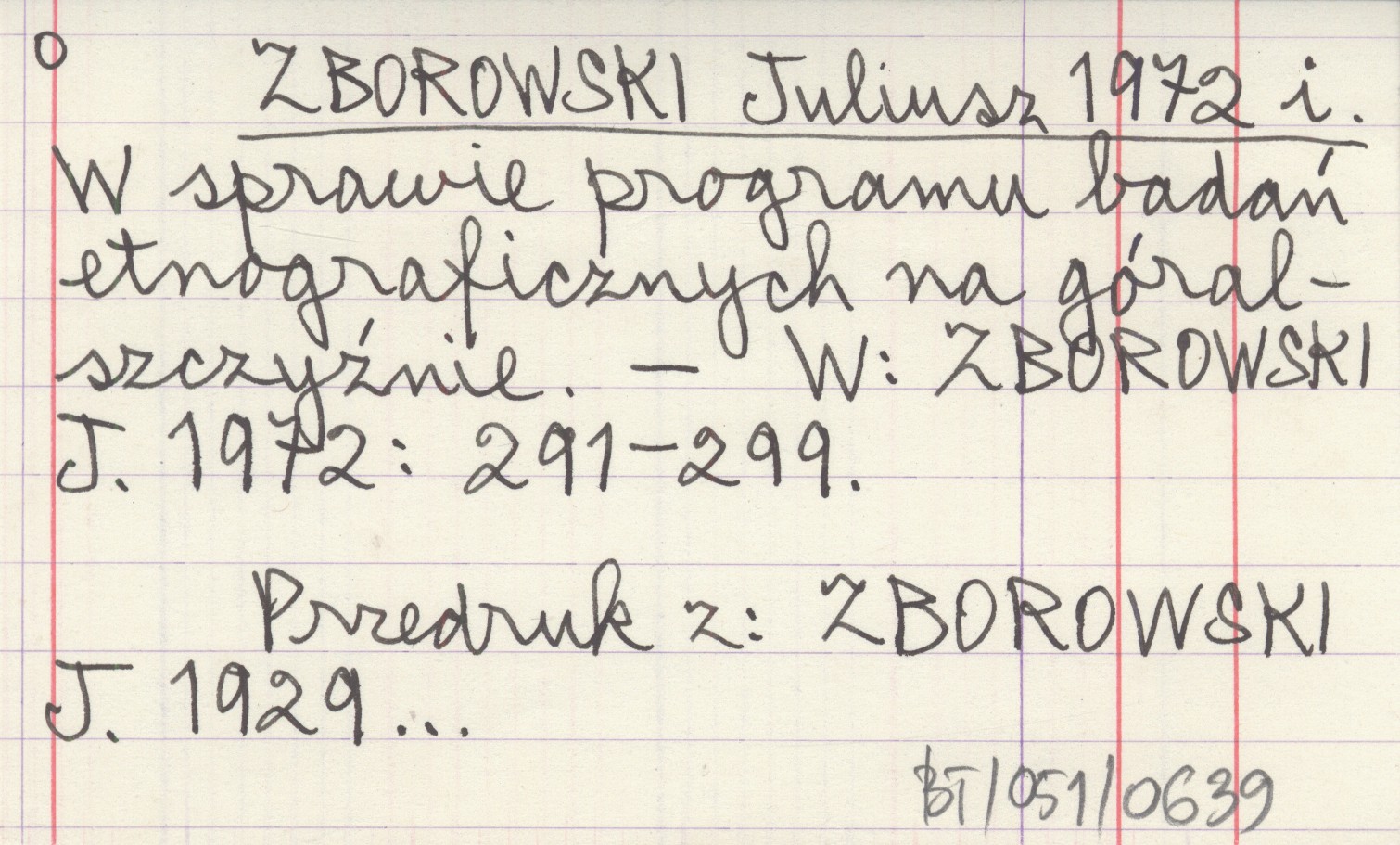 ZBOROWSKI Juliusz 1972 i W sprawie programu badań etnograficznych na góralszczyźnie.