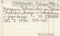 ZBOROWSKI Juliusz 1972 b Muzeum Tatrzańskie im. Tytusa Chałubińskiego w Zakopanem i jego dzieje.