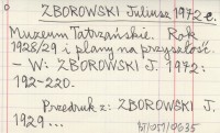 ZBOROWSKI Juliusz 1972 d Muzeum Tatrzańskie i ochrona przyrody Tatr.