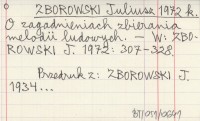 ZBOROWSKI Juliusz 1972 k O zagadnieniach zbierania melodii ludowych.