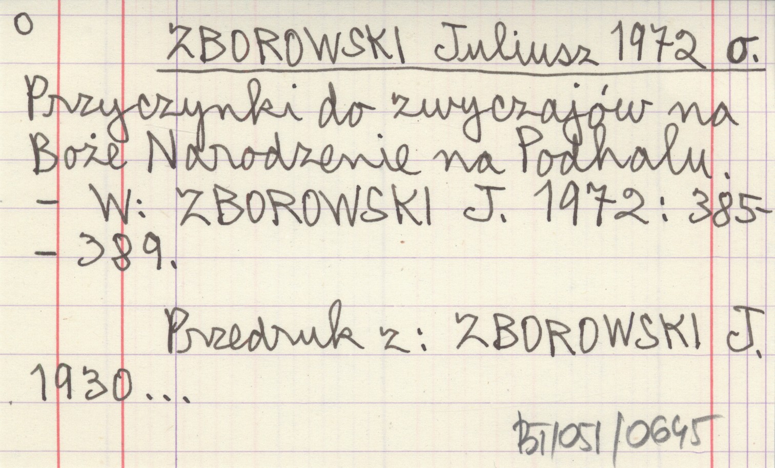 ZBOROWSKI Juliusz 1972 o Przyczynki do zwyczajów na Boże Narodzenie na Podhalu.