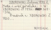 ZBOROWSKI Juliusz 1972 s Nowe przyczynki z góralszczyzny.