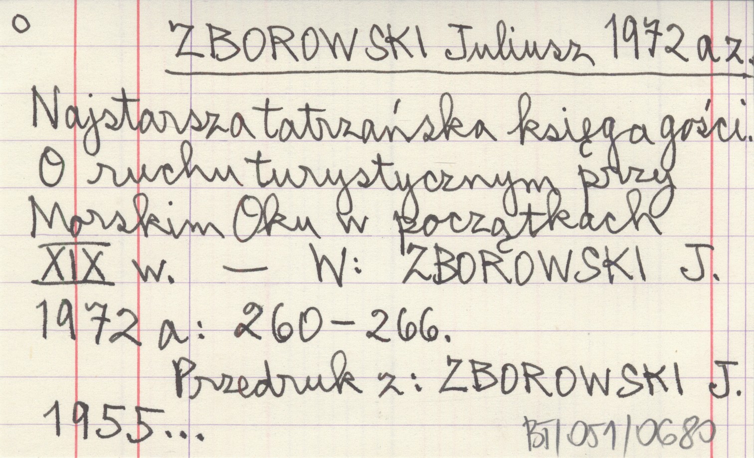 ZBOROWSKI Juliusz 1972 az Najstarsza tatrzańska księga gości. O ruchu turystycznym przy Morskim Oku w początkach XIX w.