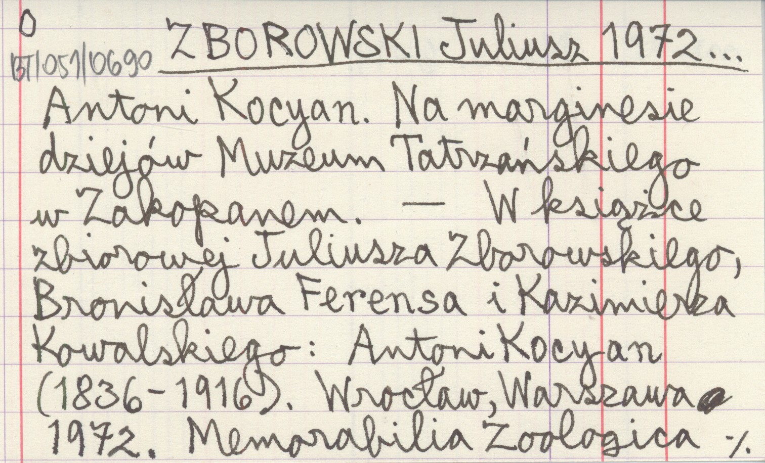 ZBOROWSKI Juliusz FERENS, Bronisław. ; KOWALSKI, Kazimierz. ; 1972... Antoni Kocyan. Na marginesie dziejów Muzeum Tatrzańskiego w Zakopanem.