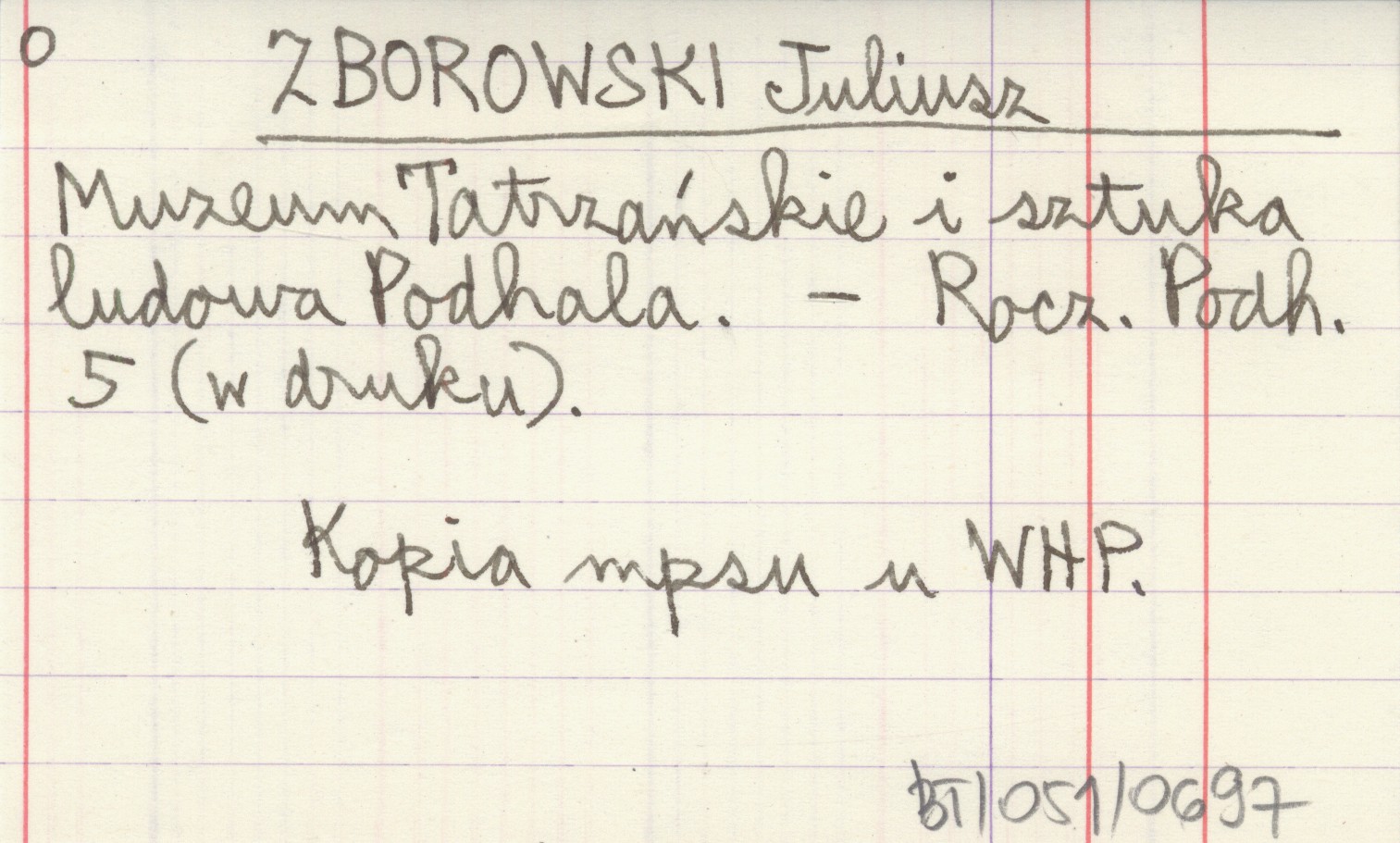 ZBOROWSKI Juliusz Muzeum Tatrzańskie i sztuka ludowa Podhala.