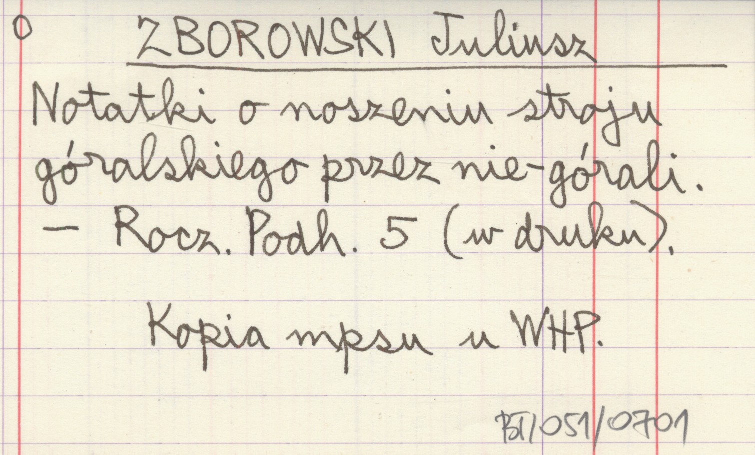 ZBOROWSKI Juliusz Notatki o noszeniu stroju góralskiego przez nie-górali.