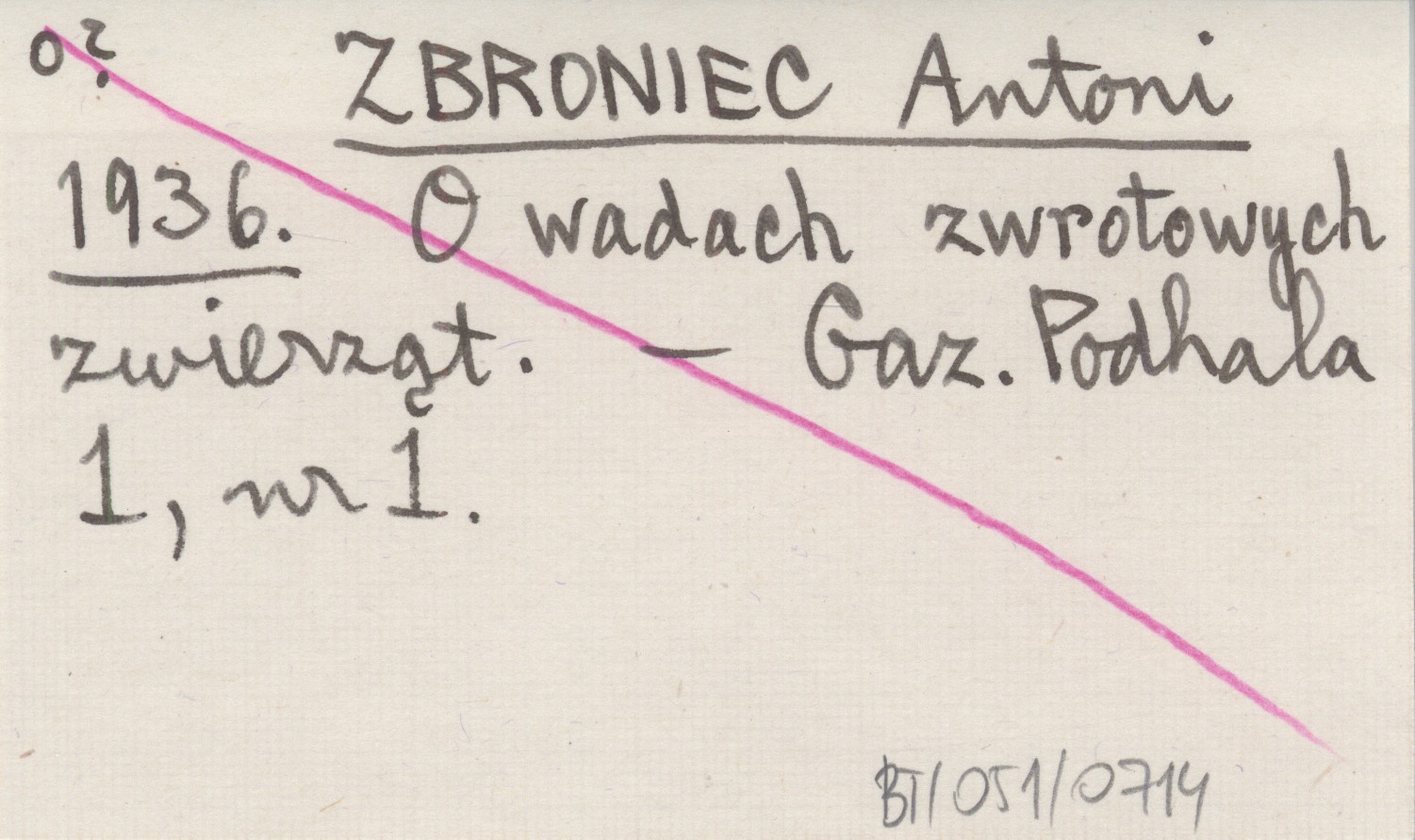 ZBRONIEC Antoni 1936 O wadach zwrotowych zwierząt.