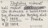 Zbytočne riskovať kalí radosť. (Do diskusie o horolezectve, stanovisko Horskej služby). 1959...