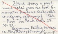 Zdanie sprawy w przedmiocie zadań przez ces. król. Towarzystwo Naukowe Krakowskie do nagrody ogłoszonych. 1860