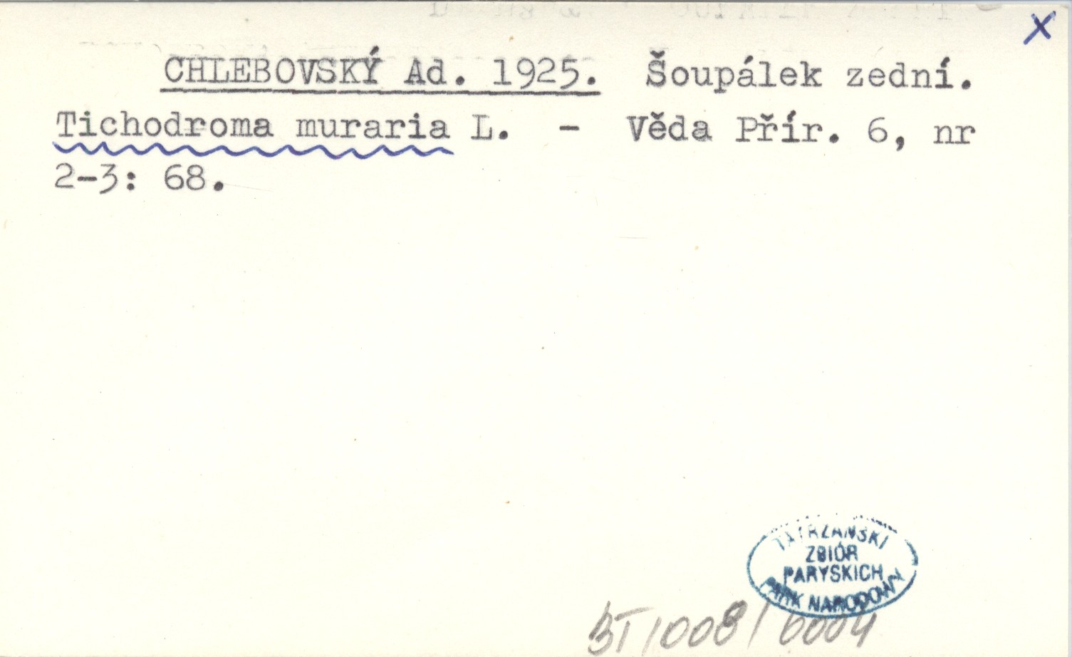 CHLEBOVSKÝ Ad. 1925 Šoupálek zední. Tichodroma muraria L.