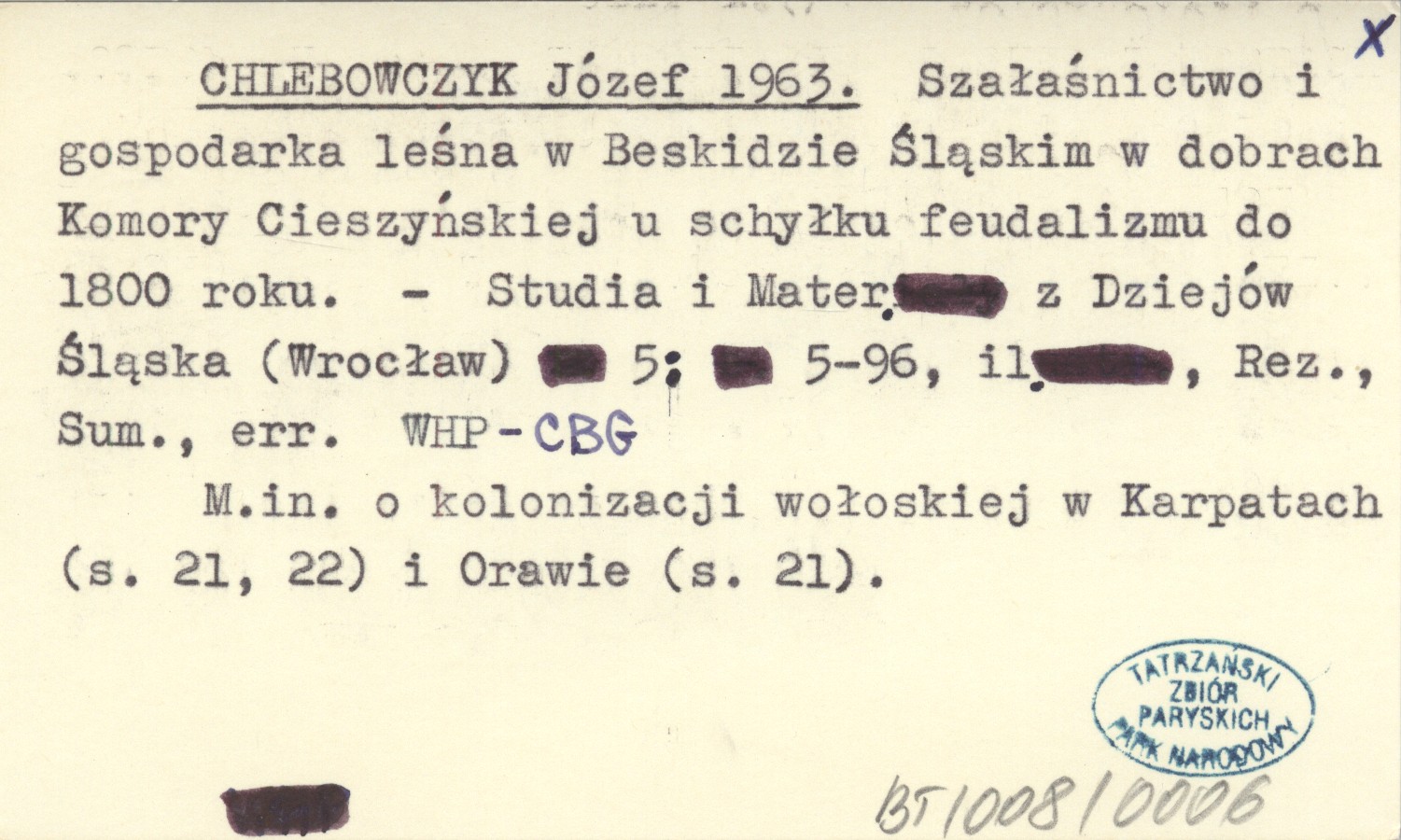 Studia i Materiały z Dziejów Śląska (Wrocław) , 5: 5-96, il., Rez., Sum., err. M. in. o kolonizacji wołoskiej w Karpatach (s. 21, 22) i Orawie (s. 21).